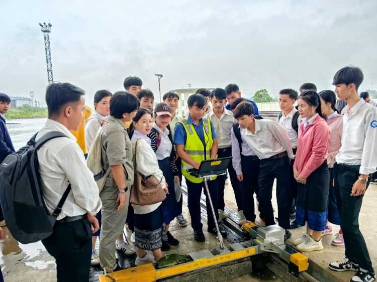 老挝铁道职业技术学院师生在万象南综合维修工区观摩轨道检测作业(资料图)