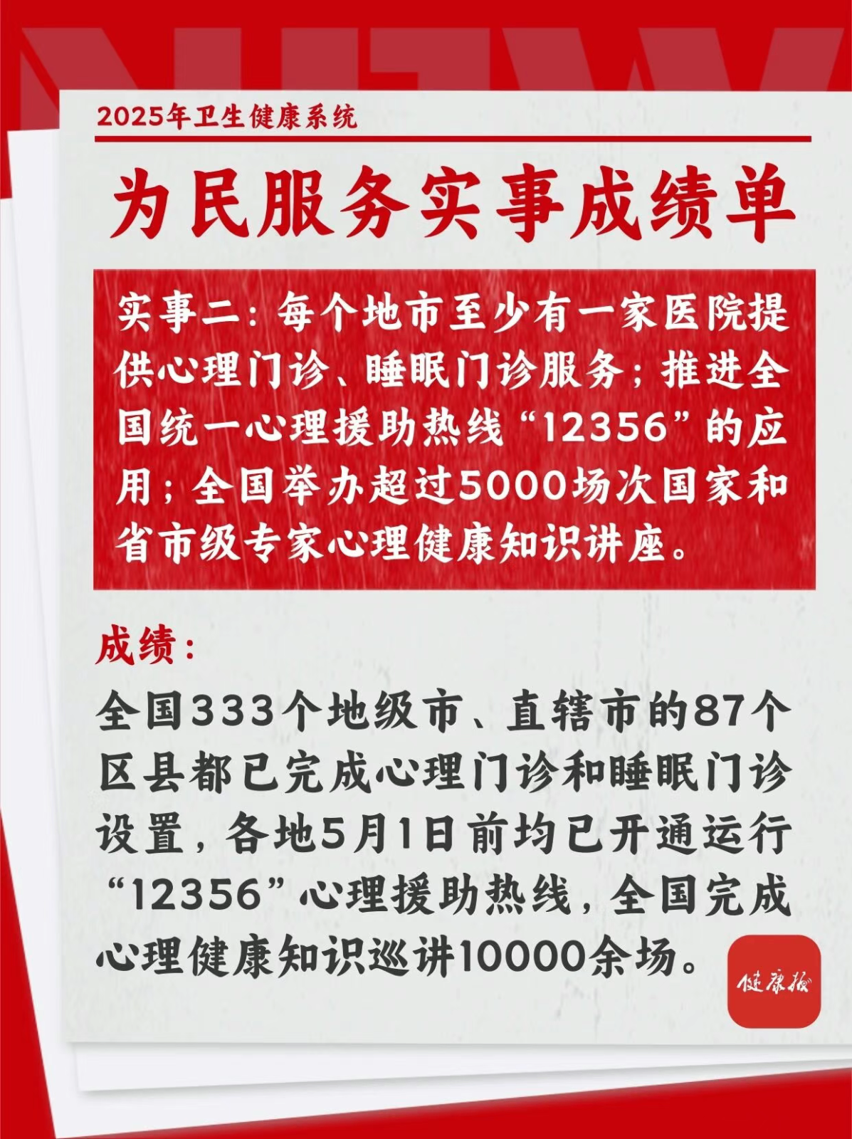 为进一步改进和提升卫生健康服务水平,更好地解决群众急难愁盼健康问题,2025年,国家卫生健康委在向社会广泛公开征集意见的基础上,决定在全系统组织实施为民服务实事项目。一年来,国家卫生健康委多措并举,推动八件为民服务实事落地见效。