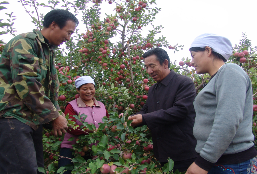 王有德(右二)察看经注林果