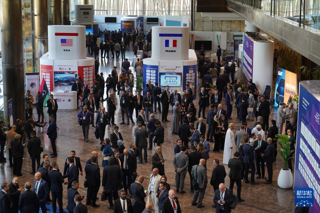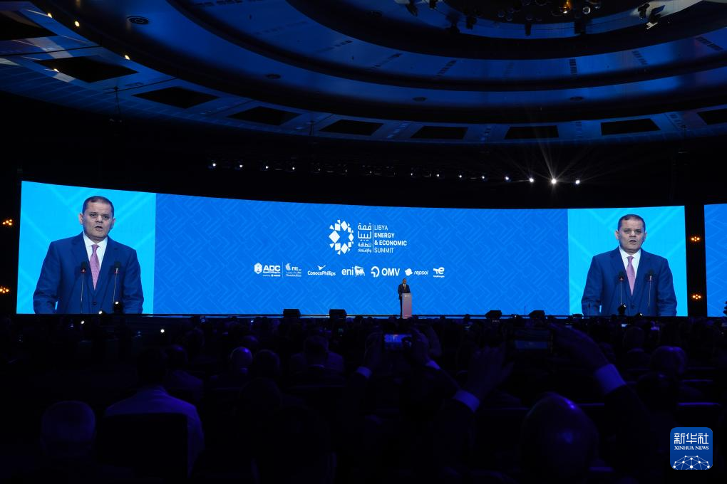这是1月24日在利比亚首都的黎波里拍摄的第四届利比亚能源与经济峰会会场。