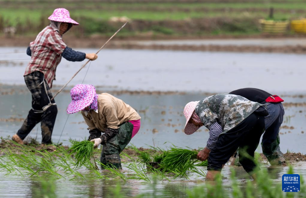 眼下正值春耕大忙时节,福建省福州市连江县广大粮农抢抓农时、不负春光,全面铺开早稻秧苗栽插作业,田野间呈现出一派生机盎然的春日春耕图景。