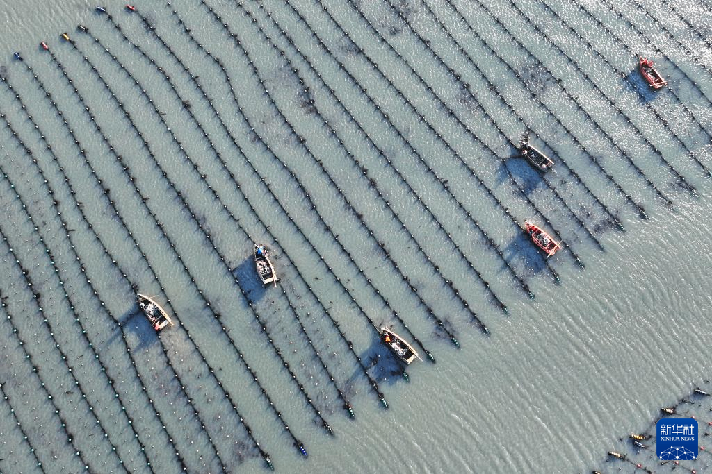 眼下,在我国海带主产区山东省荣成市,海洋牧场海带养殖区一派繁忙景象。养殖户对近岸养殖区达到成熟标准的海带分批收割,为后期收割的海带留出生长空间,以便提高海带产量和质量。
