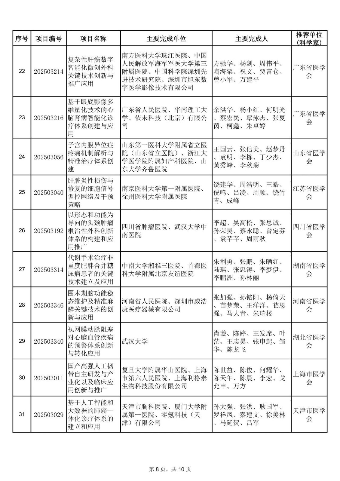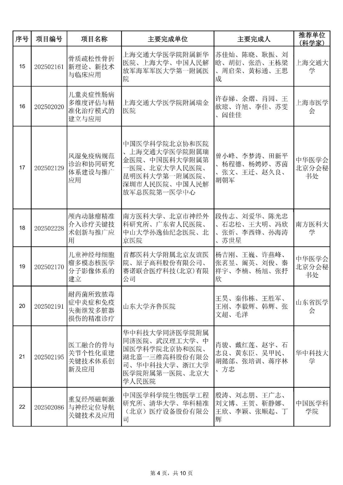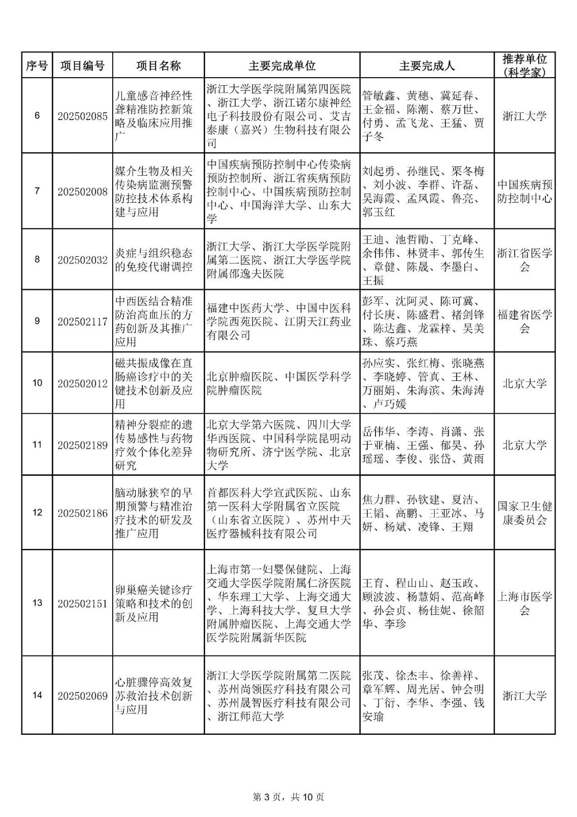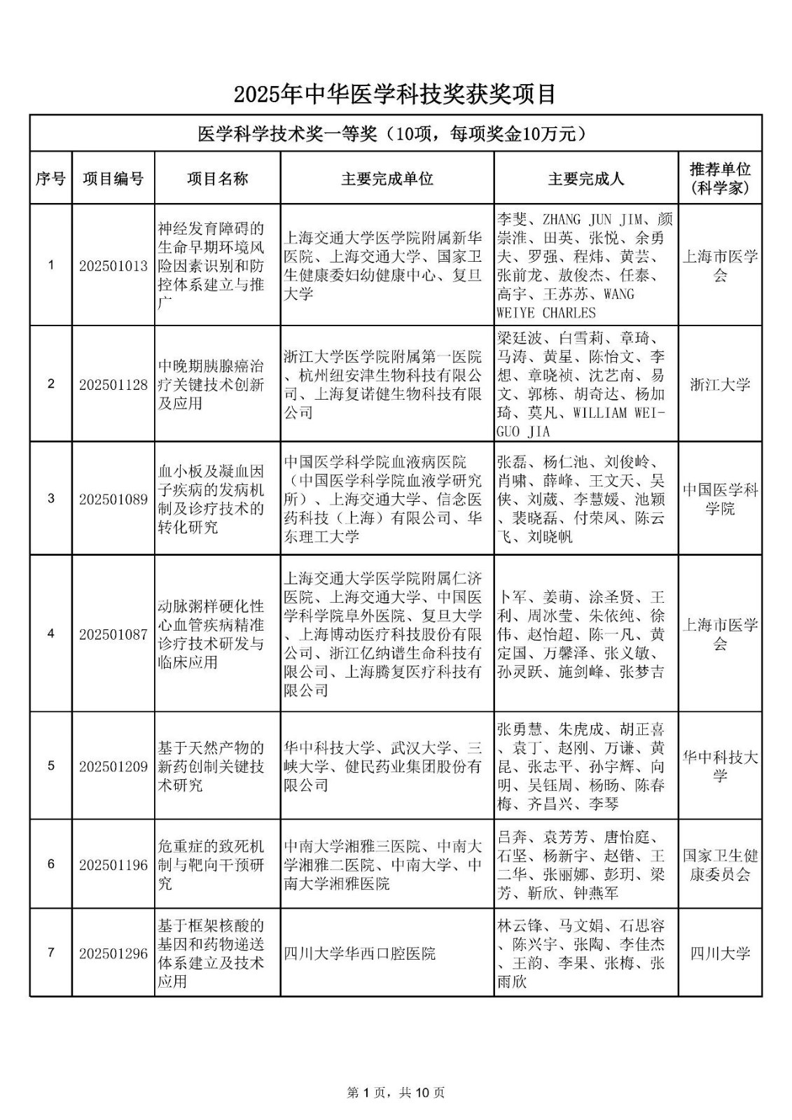 根据《中华医学科技奖管理办法》(医会科评发[2024]70号)规定,经中华医学科技奖评审委员会专家评审并报请中华医学会第26届理事会第29次常务理事会会议审议确认,中华医学会决定对2025年中华医学科技奖获奖项目(附后)进行奖励: