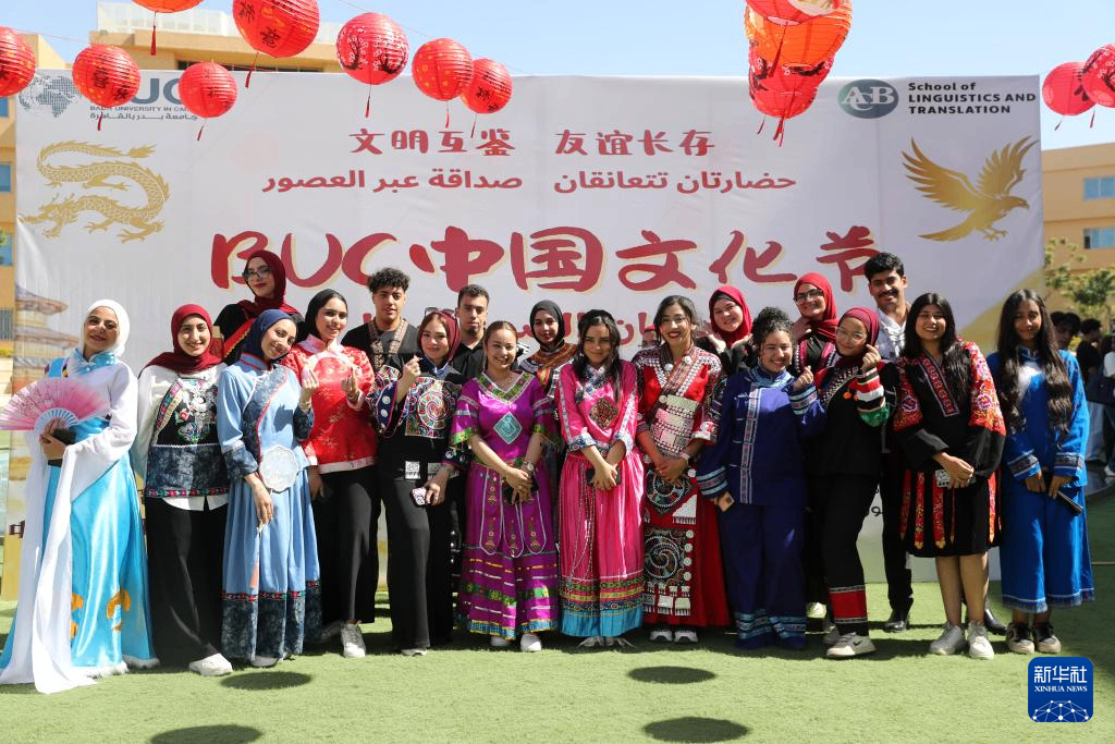 当日,开罗巴德尔大学在校园内举办中国文化节,现场不仅有中国书法、剪纸、手工艺品等展台,也有中国武术表演、传统民族服饰展秀、美食制作等活动,吸引众多学校师生参与。