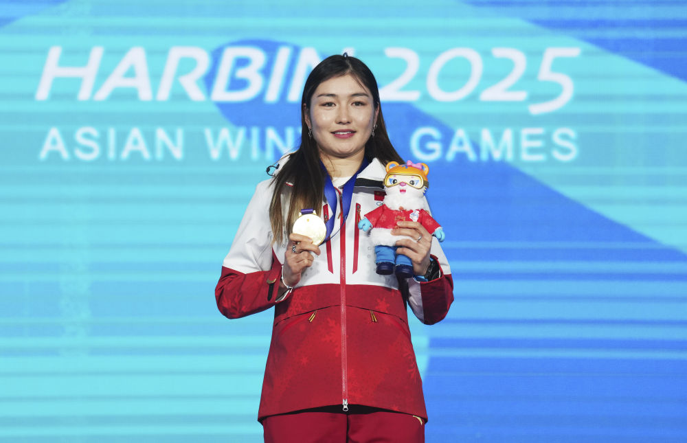 2月9日,巴亚尼·加林在第九届亚冬会颁奖仪式上。