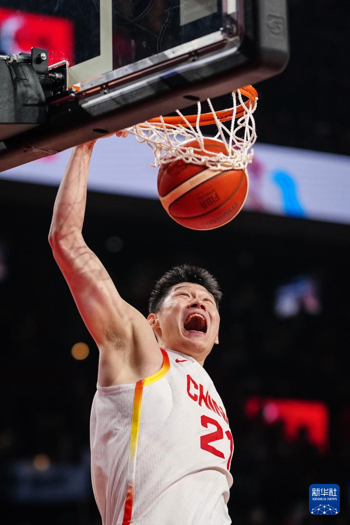 2月26日,中国队球员胡金秋在比赛中扣篮。