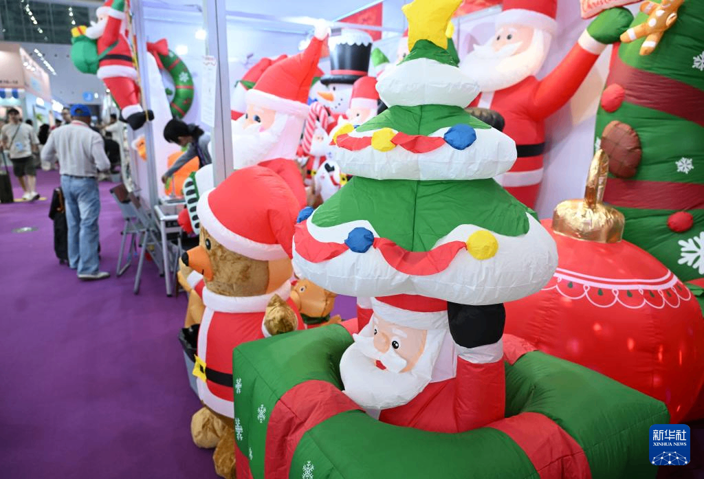 这是4月23日在第139届广交会第二期拍摄的圣诞装饰品展台。