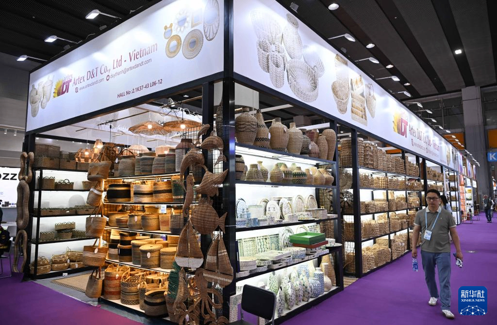 这是4月23日拍摄的第139届广交会第二期进口展区的越南企业展台。